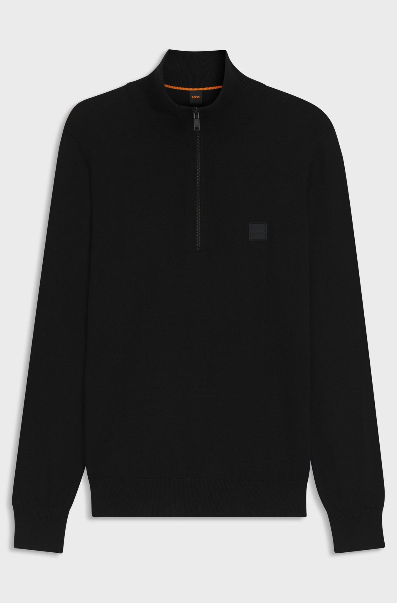 Deze zwarte trui van BOSS is gemaakt van een katoenmix en heeft een regular fit. De trui is afgewerkt met een opstaand boord, korte rits, afsluitband op de mouw en onderkant en is voorzien van een logobadge op de borst. Dit model is in 3 kleuren verkrijgbaar.
