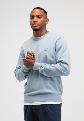 Deze lichtblauwe trui van BUTCHER OF BLUE is gemaakt van katoen en heeft een regular fit. De trui is afgewerkt met een rond geribd boord en is voorzien van een afsluitband op de mouw en onderkant. Leuk detail; de logopatch op de borst.