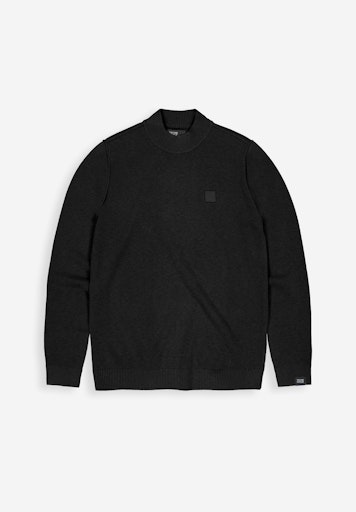 Deze zwarte trui van BUTCHER OF BLUE is gemaakt van een wolmix en heeft een regular fit. De trui is afgewerkt met een mock kraag, afsluitband op de mouw en onderkant en is voorzien van een logobadge op de borst. Dit model is in 2 kleuren verkrijgbaar.