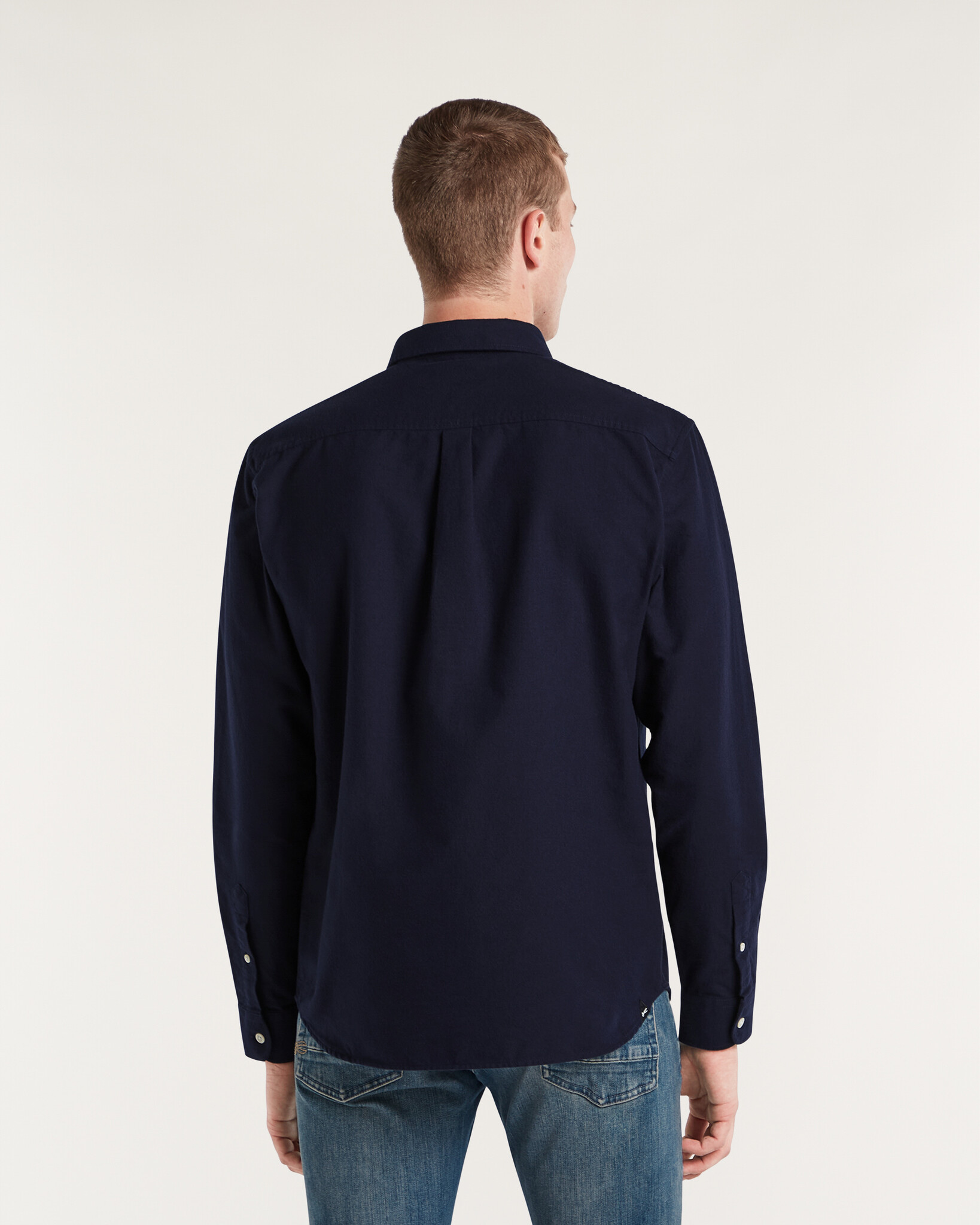 Dit donkerblauwe overhemd van DENHAM is gemaakt van katoen en heeft een regular fit. Het shirt is afgewerkt met een lichte knoop, button-down boord, afsluitband op de mouw, licht afgeronde zoom aan de onderkant en is voorzien van een geborduurd logo op de borst. Dit model is in 2 kleuren verkrijgbaar.