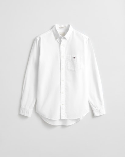 Dit witte overhemd van GANT is gemaakt van katoen en heeft een regular fit. Het shirt is afgewerkt met een lichte knoop, button-down boord, borstzak met geborduurd logo, licht afgeronde zoom aan de onderkant en is voorzien van een boxplooi met lockerlus op de achterkant. Dit model is in 2 basiskleuren verkrijgbaar en in 1 seizoenskleur.