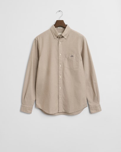 Dit zandkleurige overhemd van GANT is gemaakt van katoen en heeft een regular fit. Het shirt is afgewerkt met een lichte knoop, button-down boord, borstzak met geborduurd logo, licht afgeronde zoom aan de onderkant en is voorzien van een boxplooi met lockerlus op de achterkant. Dit model is in 2 basiskleuren verkrijgbaar en in 1 seizoenskleur.