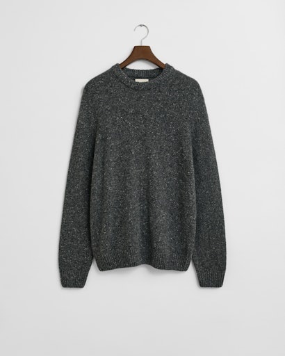 Deze rafblauwe trui van GANT is gemaakt van een wolmix en heeft een regular fit. De trui is afgewerkt met een rond geribd boord, afsluitband op de mouw en onderkant en is voorzien van een geborduurd logo op de borst. Dit model is in 2 kleuren verkrijgbaar. Leuk detail; het spikkelpatroon op de trui.