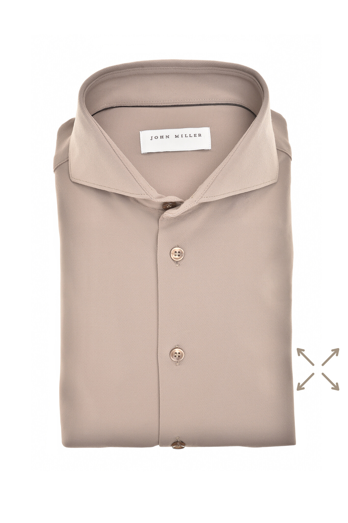 Dit zandkleurige overhemd van JOHN MILLER is gemaakt van hyperstretch polyamide en heeft een slim fit. Het shirt is afgewerkt met een gekleurde knoop, cut-away boord en is voorzien van een geborduurd logo op het manchet. Dit model is in 3 kleuren verkrijgbaar.