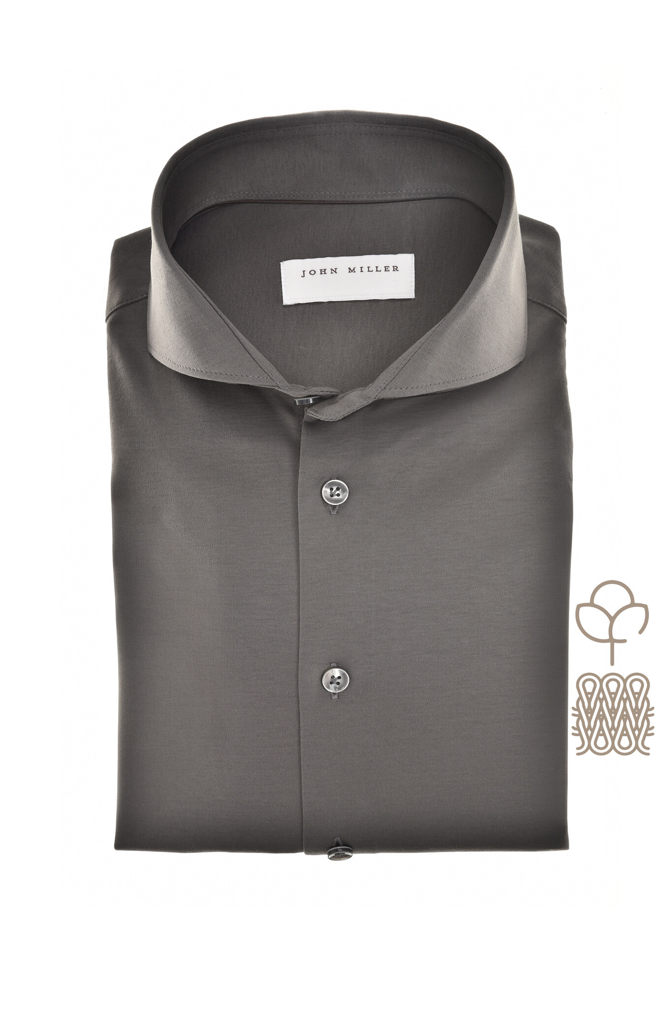 Dit grijsgroene jersey overhemd van JOHN MILLER is gemaakt van katoen en heeft een slim fit. Het shirt is afgewerkt met een gekleurde knoop, cut-away boord, geborduurd logo op de mouw en is voorzien van een subtiele glans. Dit model is in 4 kleuren verkrijgbaar.