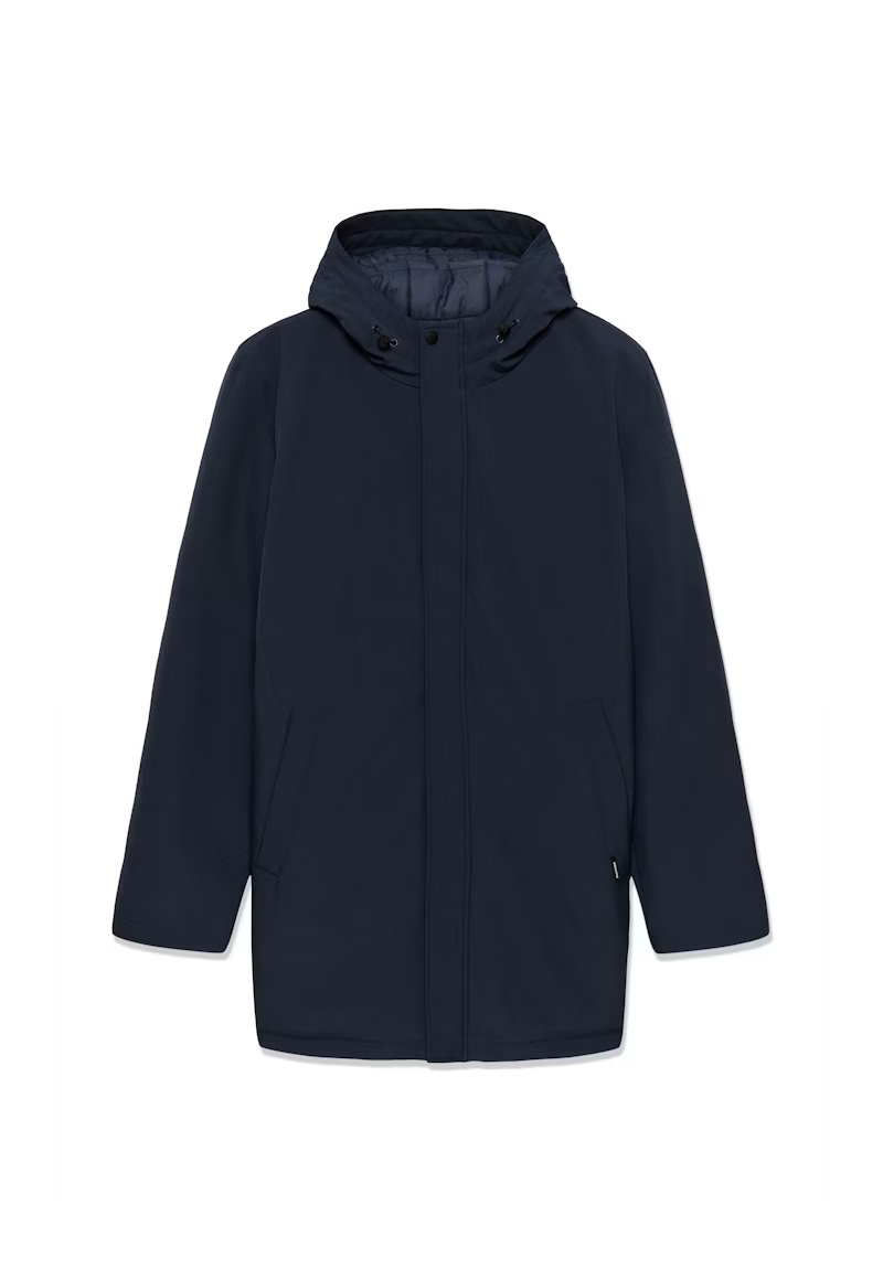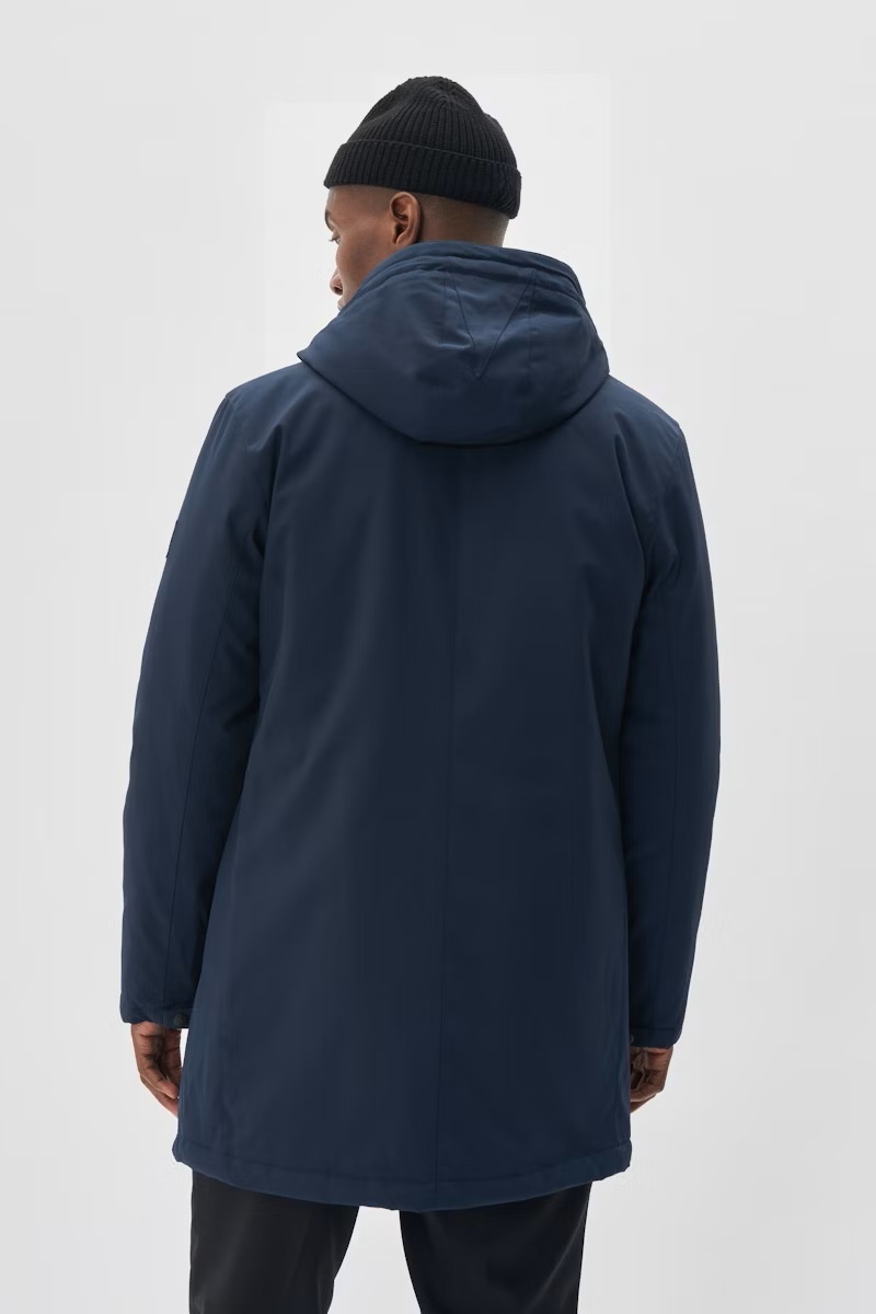Deze donkerblauwe jas van MATINIQUE is gemaakt van een polyestermix en heeft een regular fit. De jas is afgewerkt met een blinde rits en knoopsluiting, opstaand boord, capuchon met aanrijgkoord, 2 steekzakken, afsluitband op de mouw en is voorzien van een rubberen logobadge op de mouw. Dit model is in meerdere kleuren verkrijgbaar.