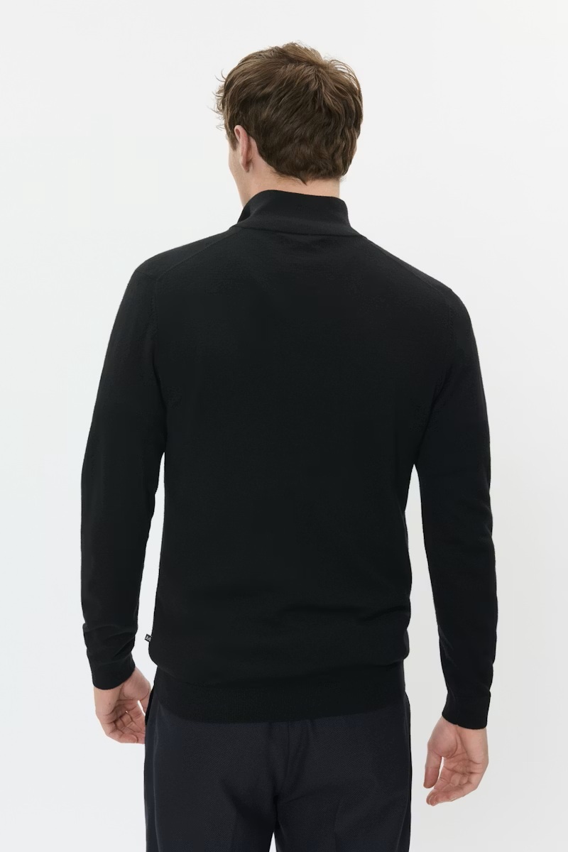 Deze zwarte trui van MATINIQUE is gemaakt van merino wol en heeft een normale pasvorm. De trui is afgewerkt met een opstaand boord met korte rits, afsluitband op de mouw en onderkant en is voorzien van een subtiel stoffen logo opzij.
