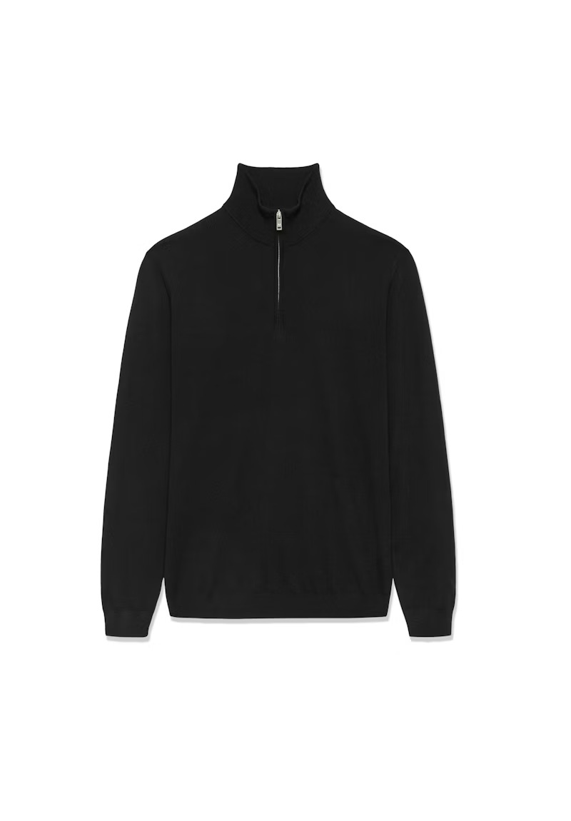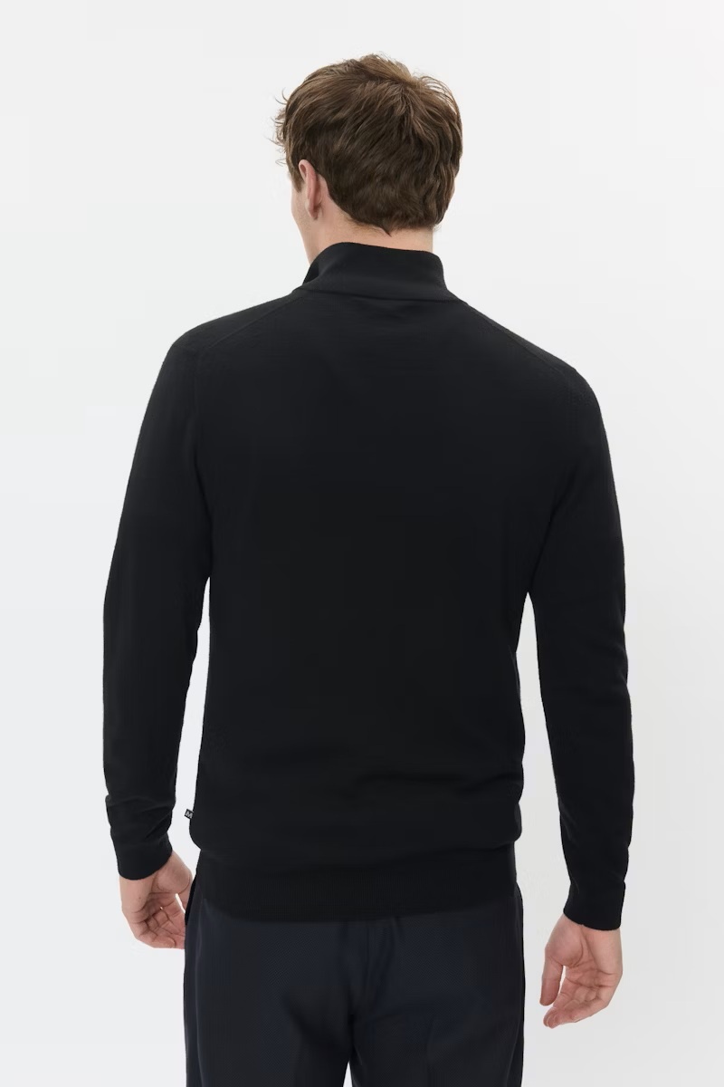Deze zwarte trui van MATINIQUE is gemaakt van merinowol en heeft een regular fit. De trui is afgewerkt met een opstaand geribd boord, korte rits en is voorzien van een afsluitband op de mouw en onderkant. Dit model is in 2 kleuren verkrijgbaar.