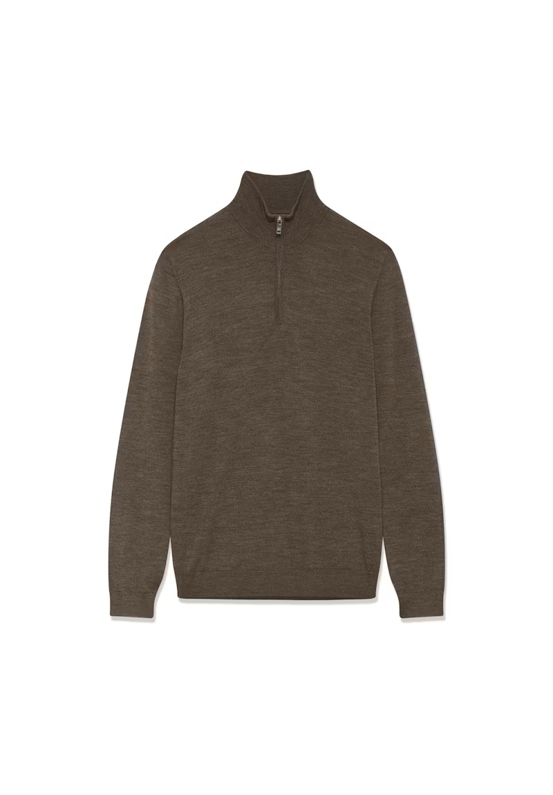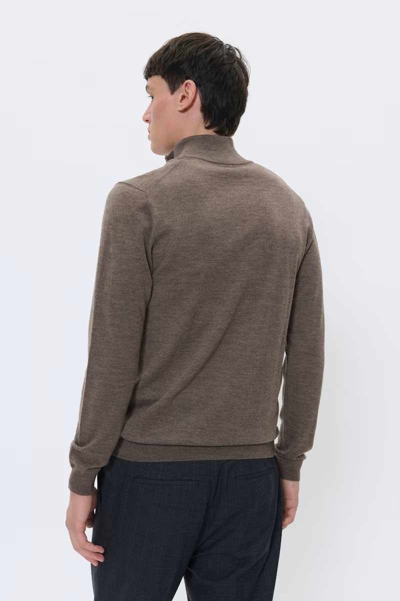 Deze taupekleurige trui van MATINIQUE is gemaakt van merinowol en heeft een regular fit. De trui is afgewerkt met een opstaand geribd boord, korte rits en is voorzien van een afsluitband op de mouw en onderkant. Dit model is in 2 kleuren verkrijgbaar.