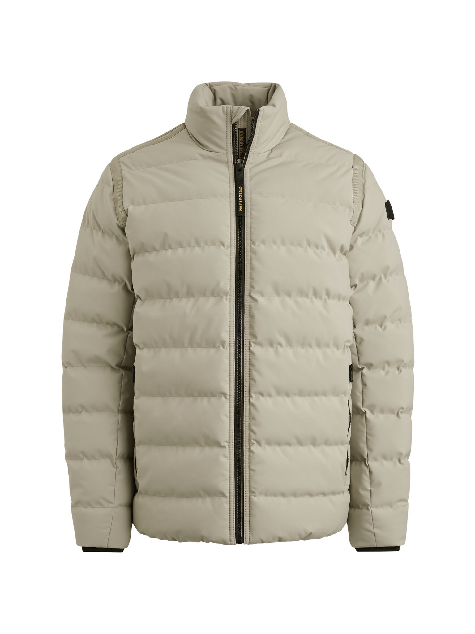 Dit lichtbeige jack van PME LEGEND is gemaakt van polyester en heeft een regular fit. Het jack is afgewerkt met een zwarte ritssluiting, opstaand boord, 2 steekzakken met rits, afsluitband op de mouw en onderaan het jack en is voorzien van een rubberen patch op de mouw. Leuk detail; het is een lichtgewicht jack met tech down vulling.