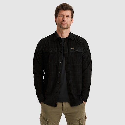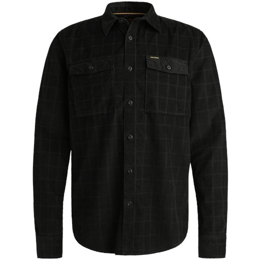 Dit zwarte corduroy overhemd van PME LEGEND is gemaakt van katoen en heeft een regular fit. Het shirt is afgewerkt met een kort boord, zwarte knoopsluiting, 2 klepzakken op de borst, licht afgeronde zoom aan de onderkant en is voorzien van een blokmotief.