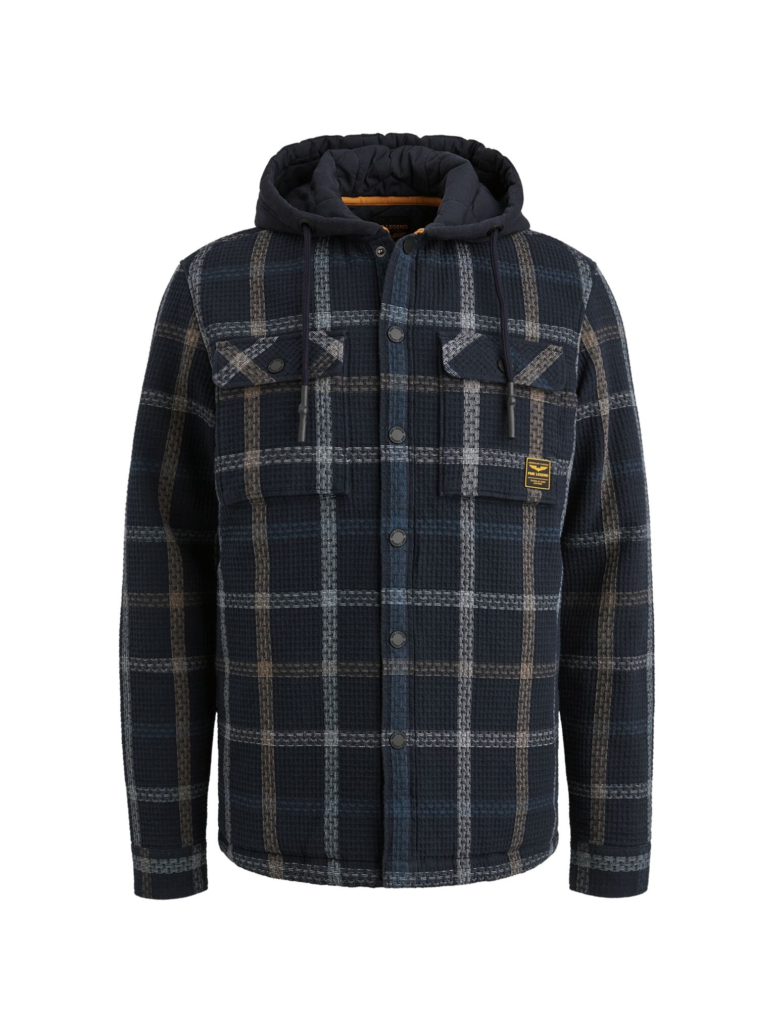 Dit donkerblauwe buitenvest van PME LEGEND is gemaakt van katoen en heeft een regular fit. Het vest is afgewerkt met een knoopsluiting, vaste capuchon met aanrijgkoord, 2 klepzakken met drukknoop, afsluitband op de mouw en is voorzien van een grove ruit.