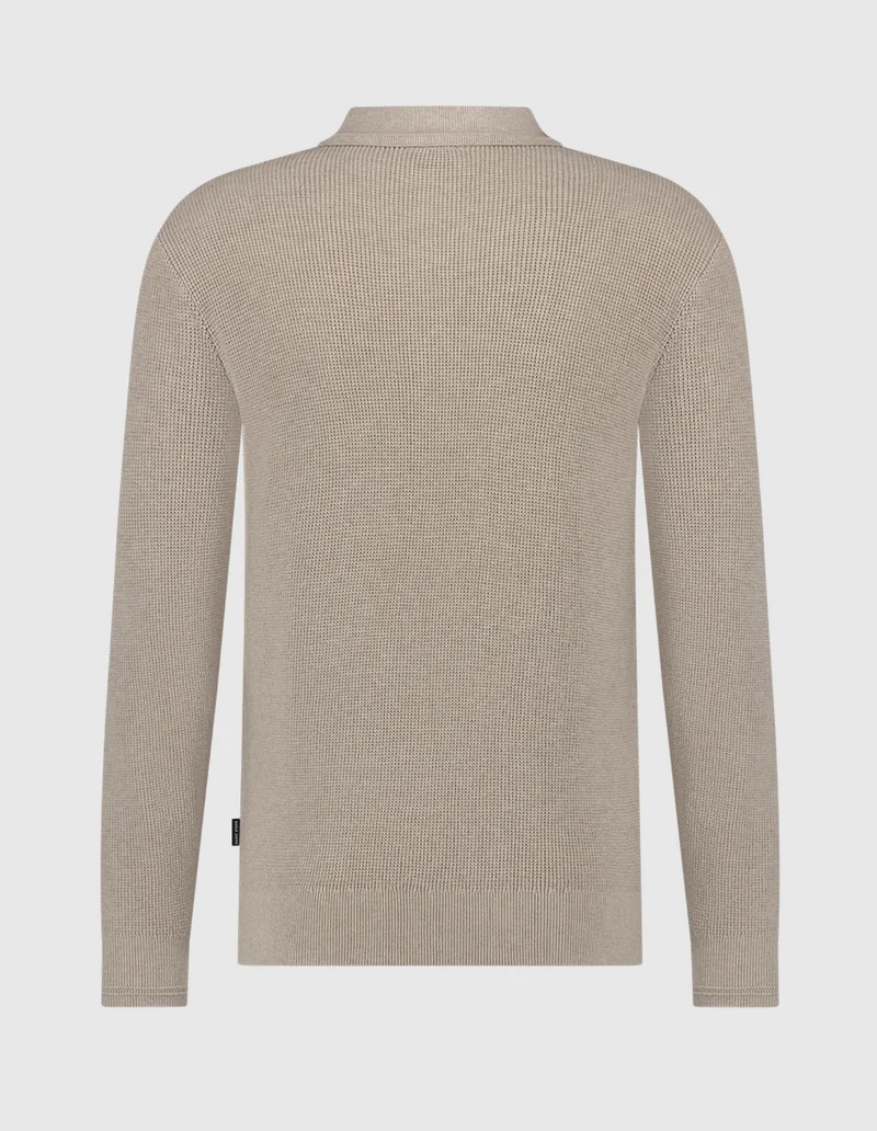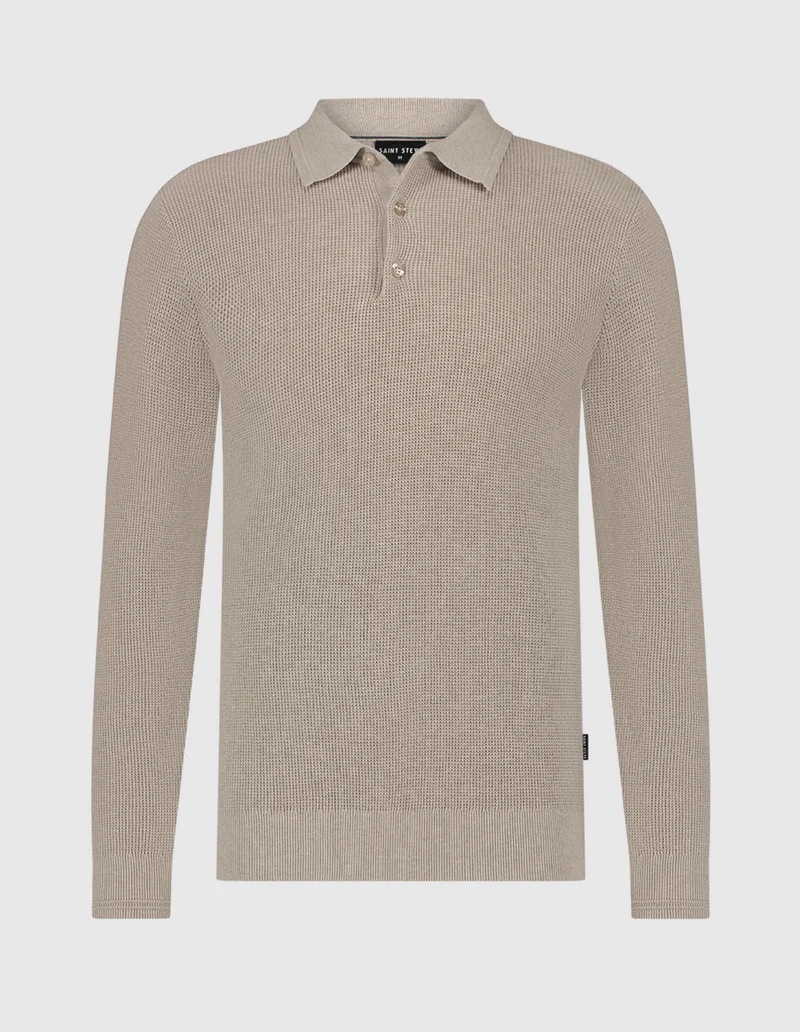 Deze zandkleurige trui van SAINT STEVE is gemaakt van katoen en heeft een normale pasvorm. De trui is afgewerkt met een polokraag met 3-knoopsluiting, afsluitband op de mouw en onderkant en is voorzien van een subtiel stoffen logo opzij. Leuk detail; de all-over structuur op het shirt. Dit model is in 2 kleuren verkrijgbaar.