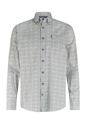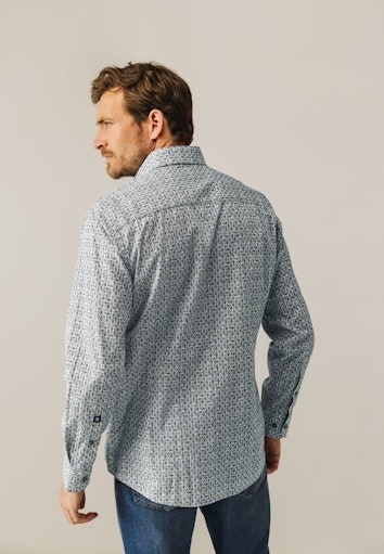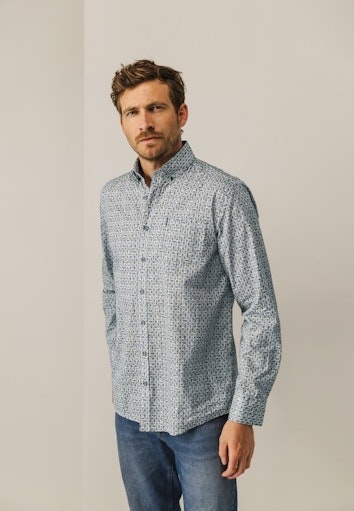 Dit blauw/groene overhemd van STATE OF ART is gemaakt van een katoenmix en heeft een regular fit. Het shirt is afgewerkt met een gekleurde knoop, button-down boord, borstzak met subtiel stoffen logo en is voorzien van een licht afgeronde zoom aan de onderkant.