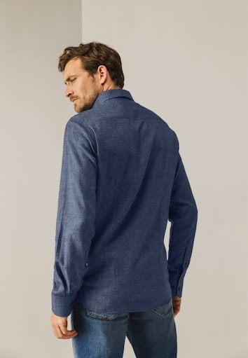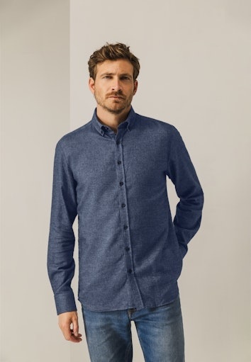 Dit middenblauwe overhemd van STATE OF ART is gemaakt van zacht katoen en heeft een regular fit. Het shirt is afgewerkt met een gekleurde knoop, licht afgeronde zoom aan de onderkant en is voorzien van een fijne all-over structuur.