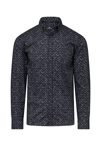 Dit donkerblauwe overhemd van STATE OF ART is gemaakt van poplin katoen en heeft een regular fit. Het shirt is afgewerkt met een donkere knoop, button-down boord, borstzak met subtiel stoffen logo, licht afgeronde zoom aan de onderkant en is voorzien van een all-over bladerprint.
